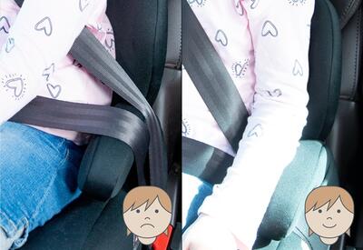 Let erop dat de gordel over het sleutelbeen van je kind loopt. En niet over de schouder of in de nek. De gordel mag ook niet onder de oksel of achter de rug langs lopen.